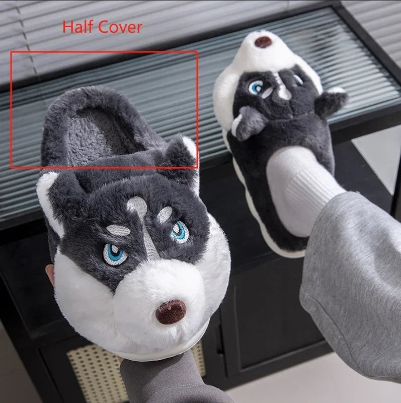 🐺 Plush Husky Slippers – Snuggle Up with Arctic Charm