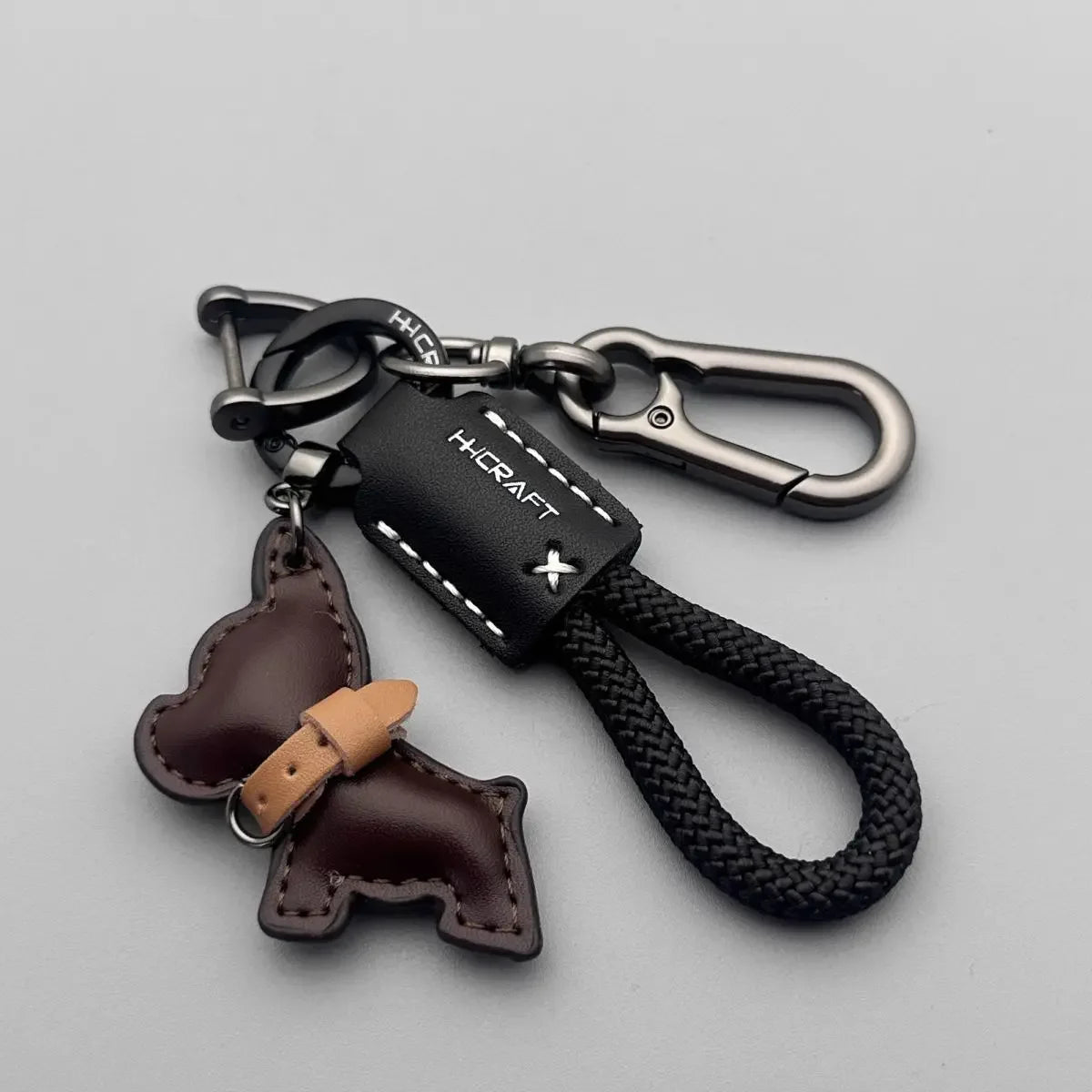 🐾 Handmade French Bulldog Leather Keychain – Stylish & Durable