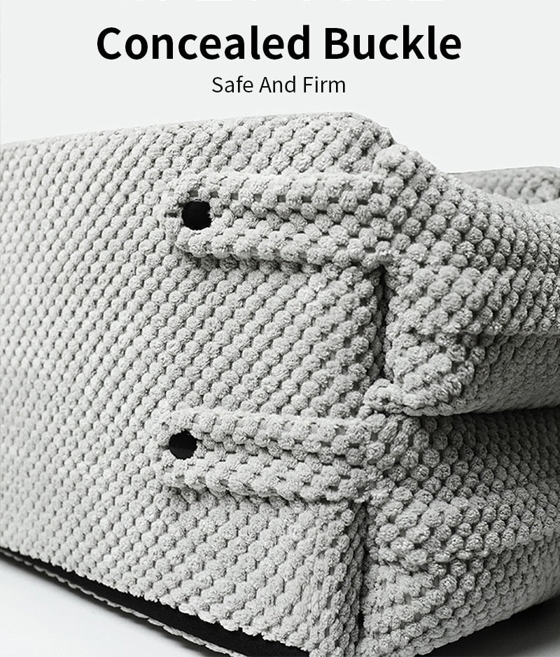 - SAFER & COMFY CAR RIDE - When it comes to internal dog car seat parts, the filling is the most important element. The high-density environmental sponge of this console dog car seat will absorb external force and offers the best protection against sudden braking. Wrapping the memory cotton in durable pure cotton fabric, making it look fuller and has fewer wrinkles on the cover. The fabric is breathable and Anti-scratch. The dog console car seat is non-toxic, which is safer and healthier for pets.